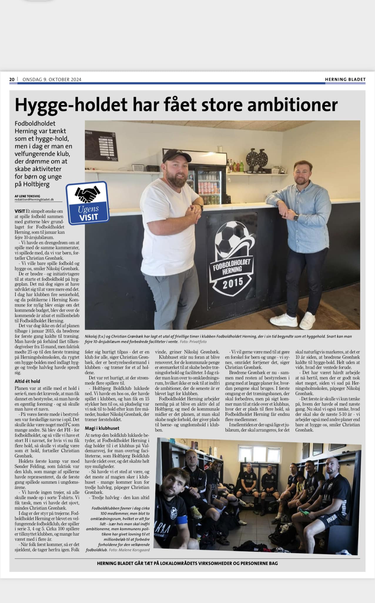 https://fb.watch/x9-V8mg-2d/ - I september 2024 blev det annonceret, at FodboldHoldet Herning bliver tildelt 2,75 millioner. kr. over 2025, 2026 og 2027 af Herning Kommune.